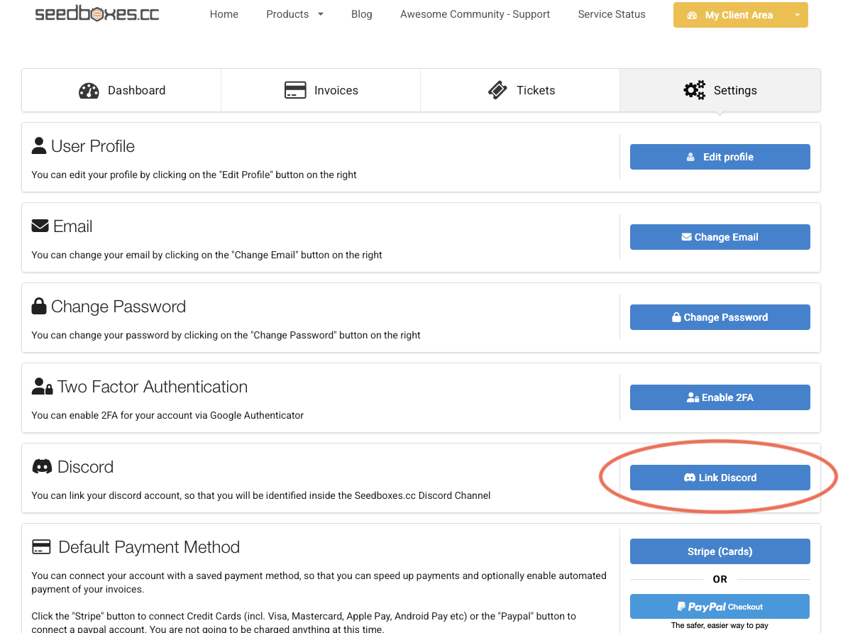 To get the right permissions and access all features in our Discord server, you’ll need to link your Seedboxes.cc account with Discord: